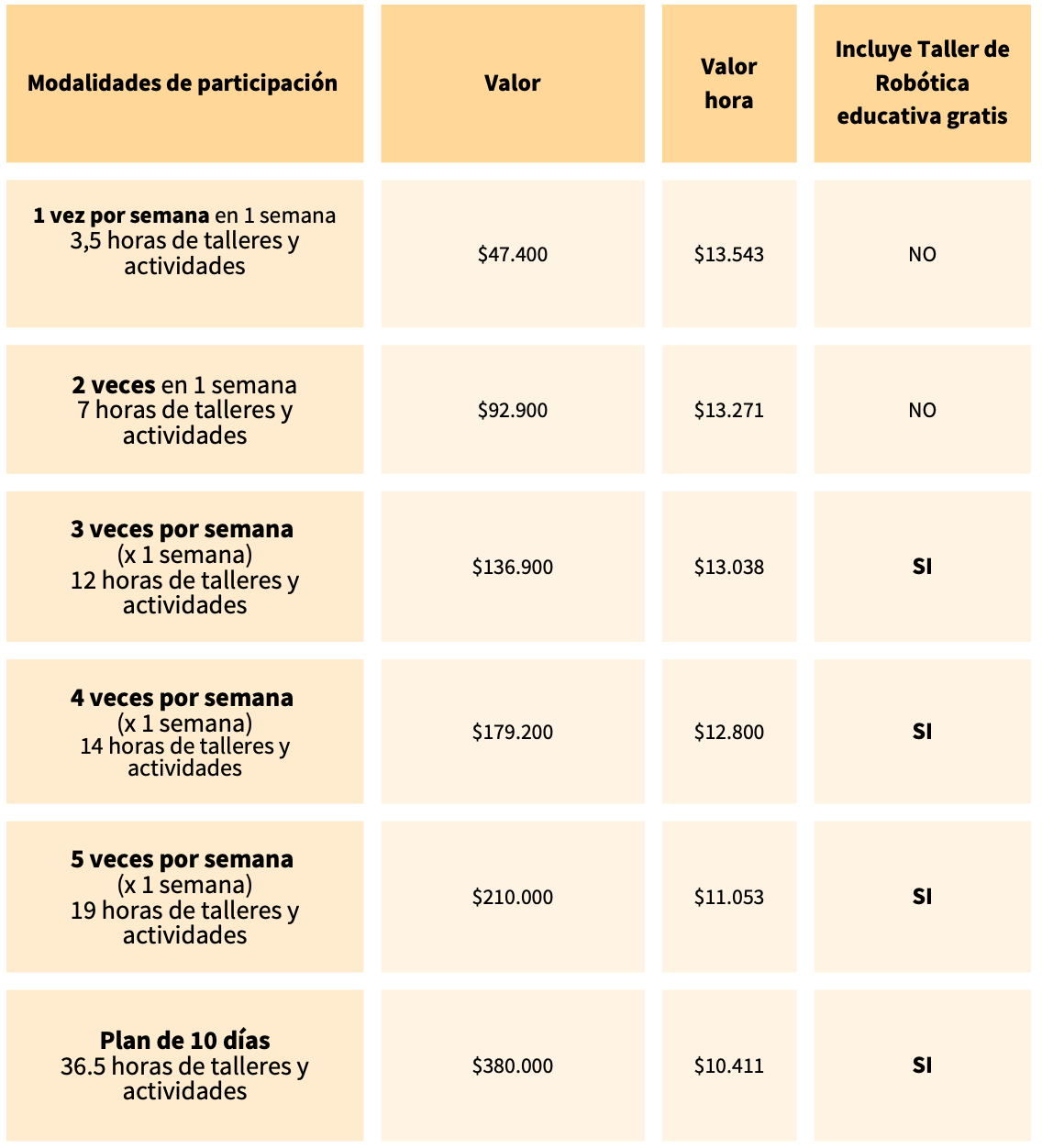 Bonus: Taller gratuito de Robótica educativa de 1,5 horas, para planes de más de 3 días.