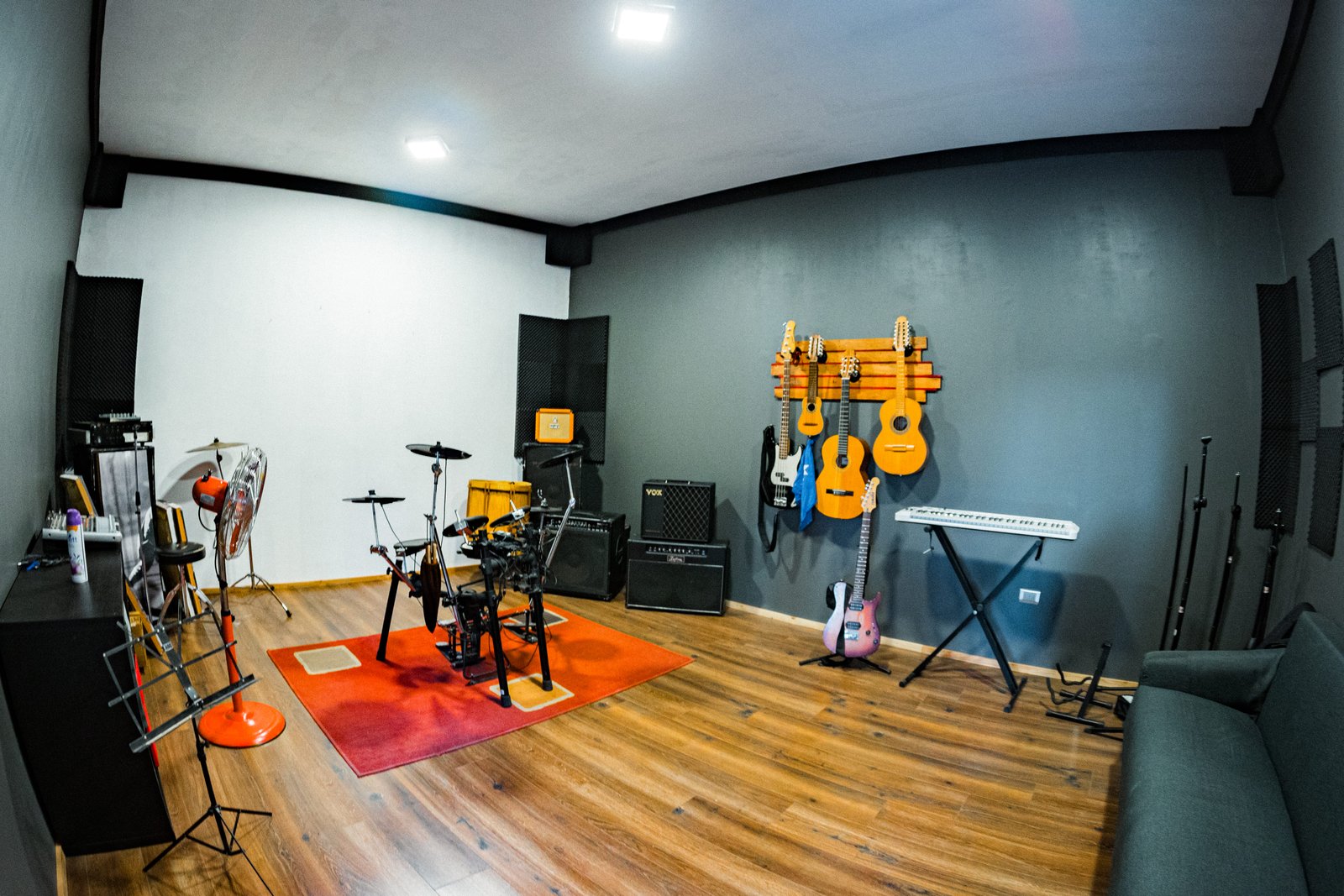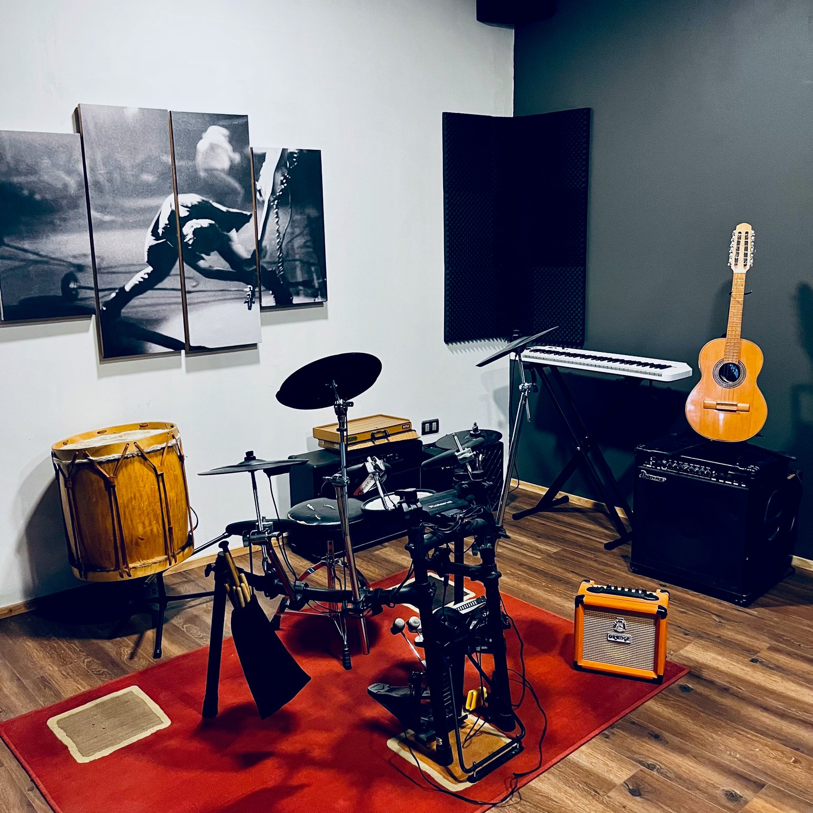 Superficie amplia y cómoda diseñada específicamente para ensayos de bandas, clases particulares de instrumentos en grupos pequeños, grabación de podcast y/o procesos creativos sin distraciones.
